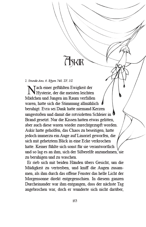 Der Preis für den Print-Buchsatz beträgt 1,50 SFr/€ pro Normseite. Individuelle Kapitelzierden & Szenentrenner kosten jeweils zusätzlich 20-50 SFr/€, je nach Arbeitsaufwand. Wenn du dazu gern noch Illustrationen in deinem Buch möchtest, findest du die Preise dazu unter der Sparte Illustrationen & Karten.